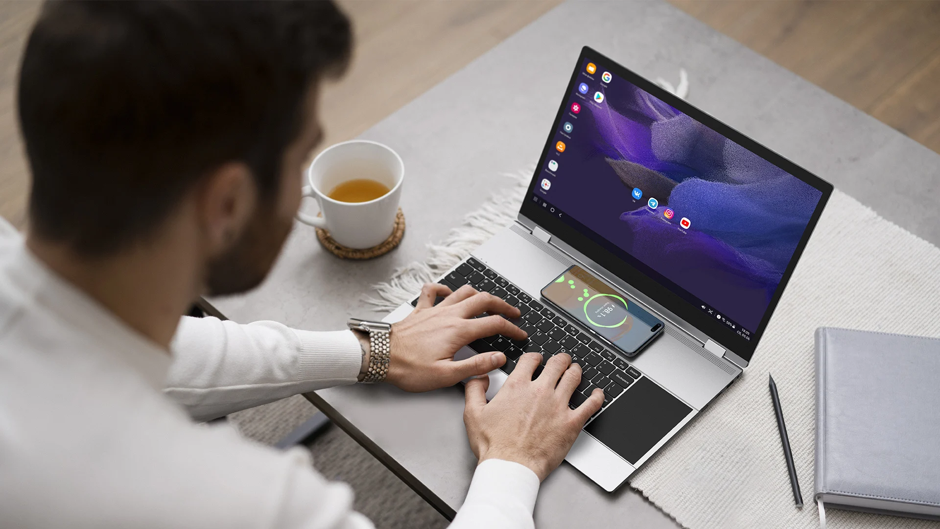 Le clavier permet une utilisation multifonctionnelle avec le bureau. Le moniteur sans fil Samsung dex X 15.6 Pro est parfait pour la maison et les déplacements.