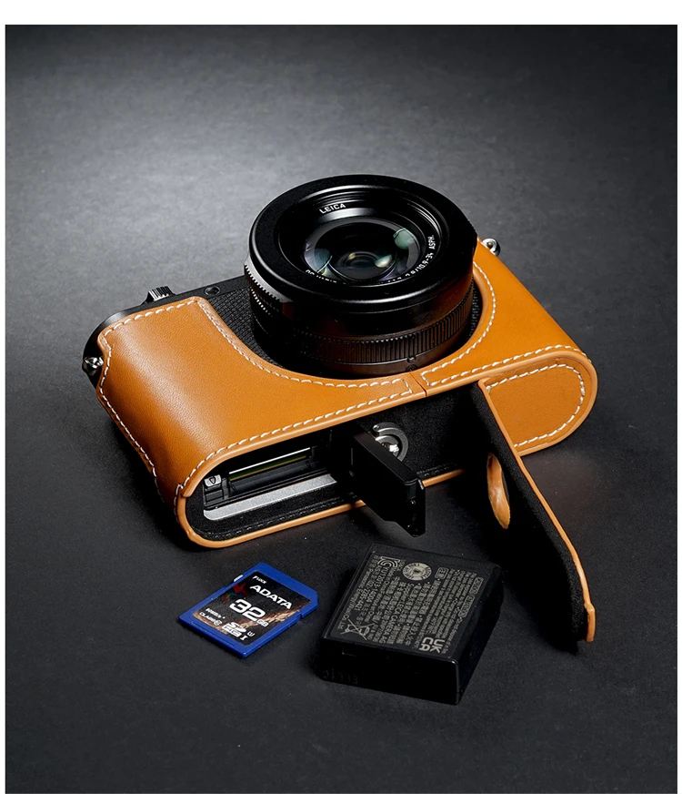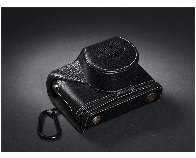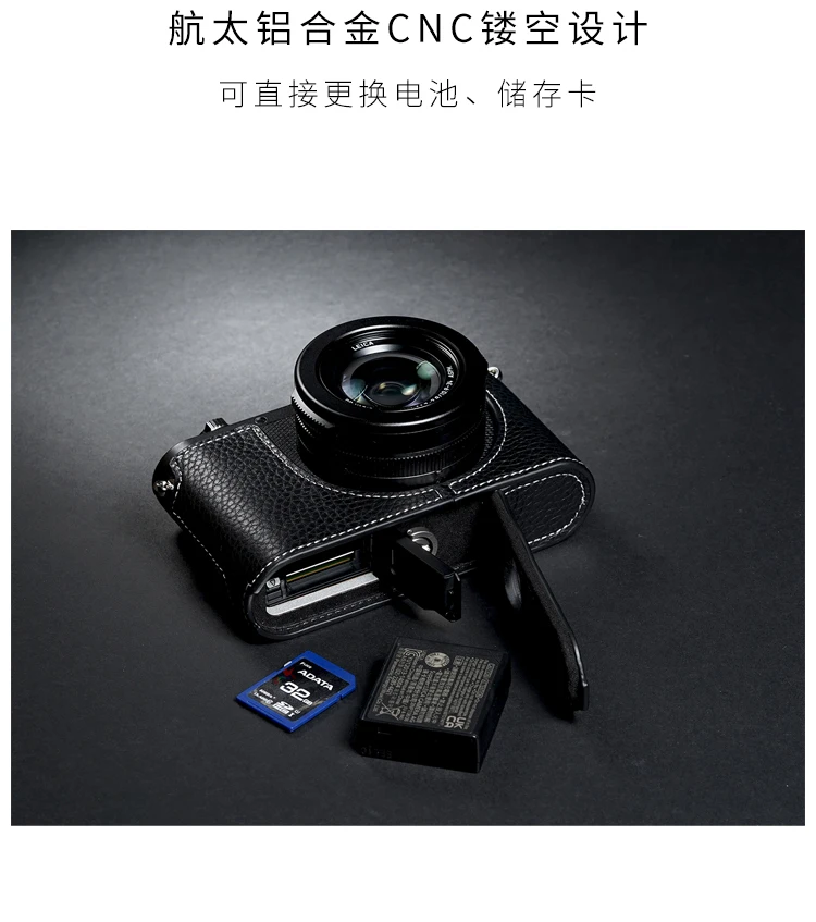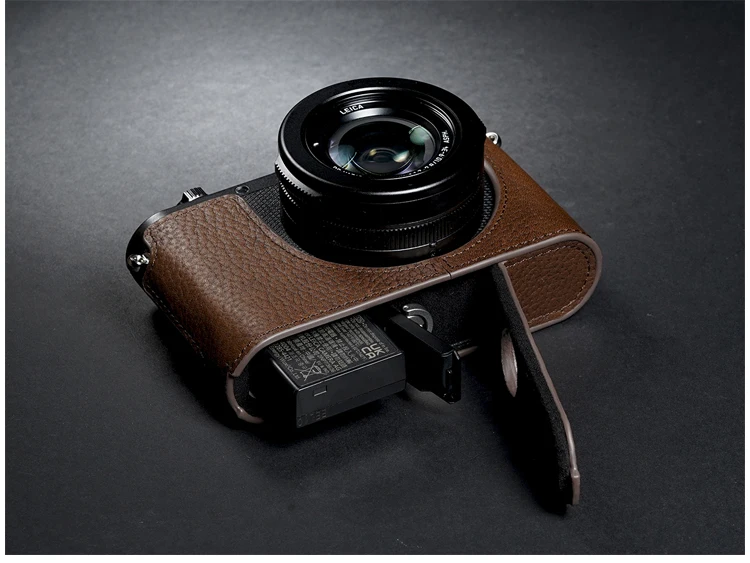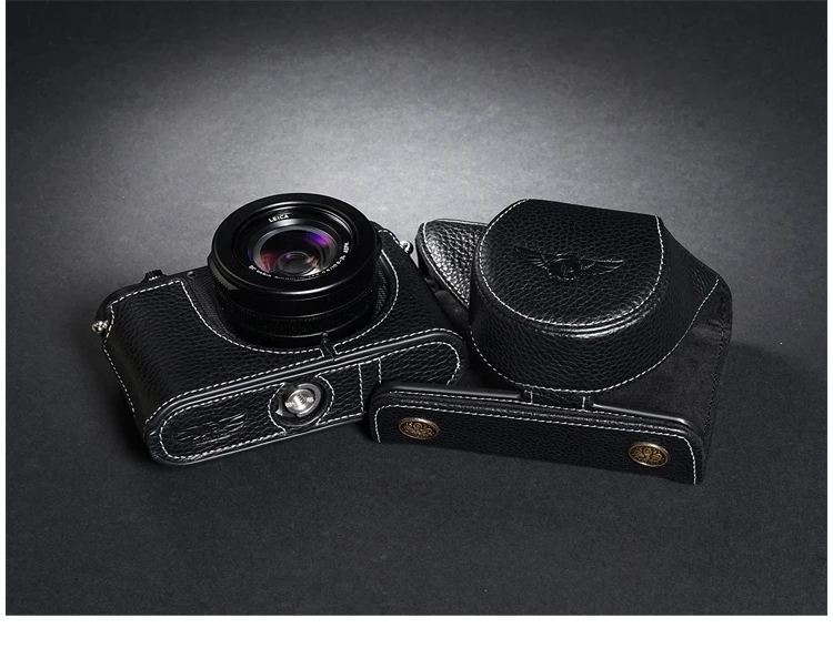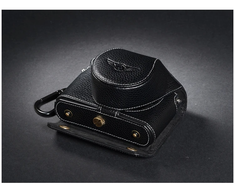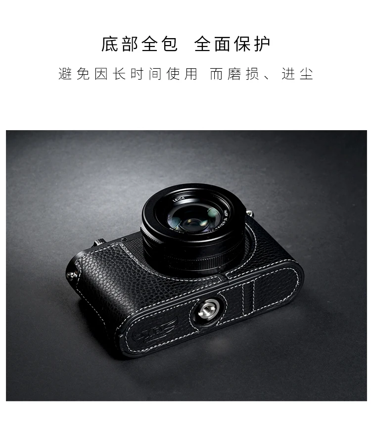 Cet appareil est fabriqué en cuir de vachette de couche supérieure véritable, le design est simple et vintage, les techniques de dimensionnement en métal le rendent très adapté au corps de l’appareil photo.