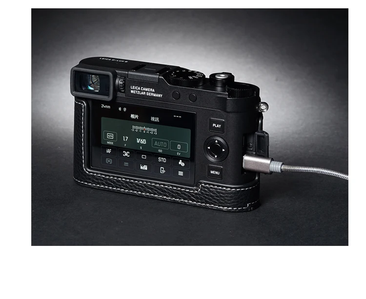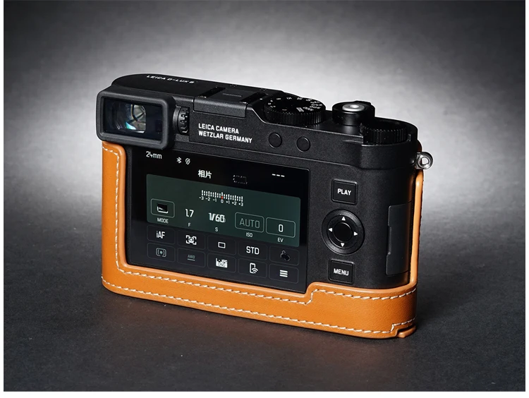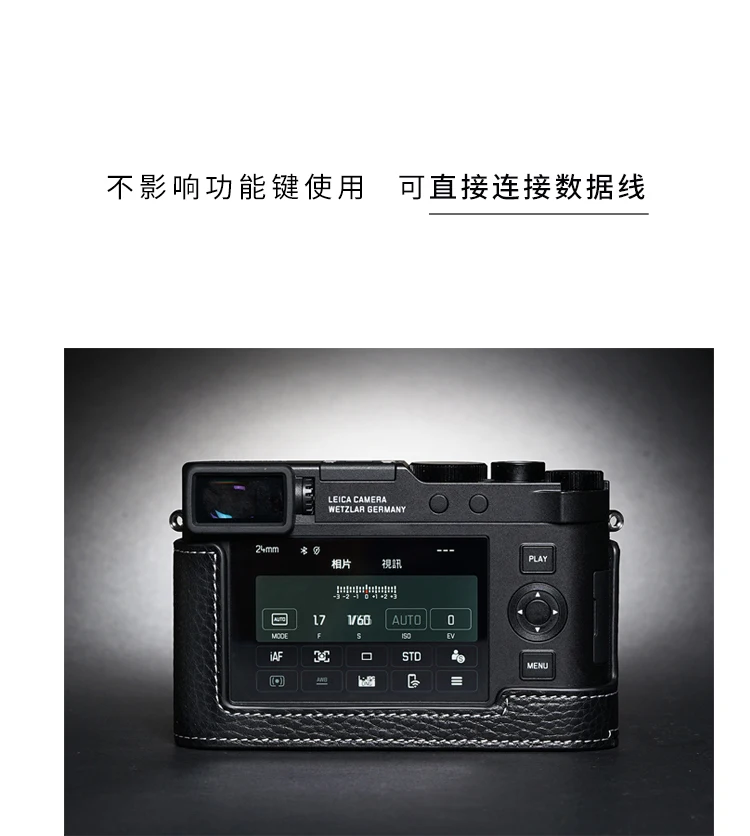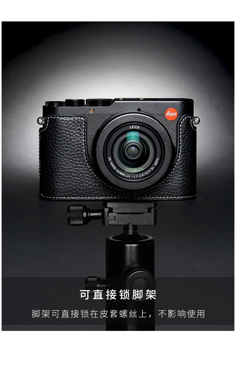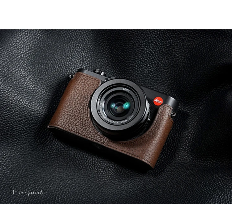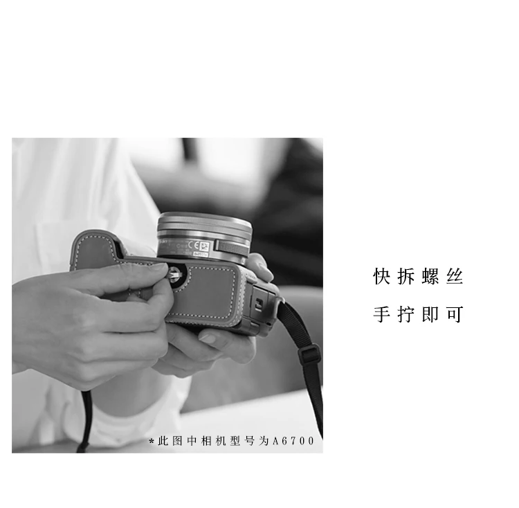 Cet appareil est fabriqué en cuir de vachette de couche supérieure véritable, le design est simple et vintage, les techniques de dimensionnement en métal le rendent très adapté au corps de l’appareil photo.