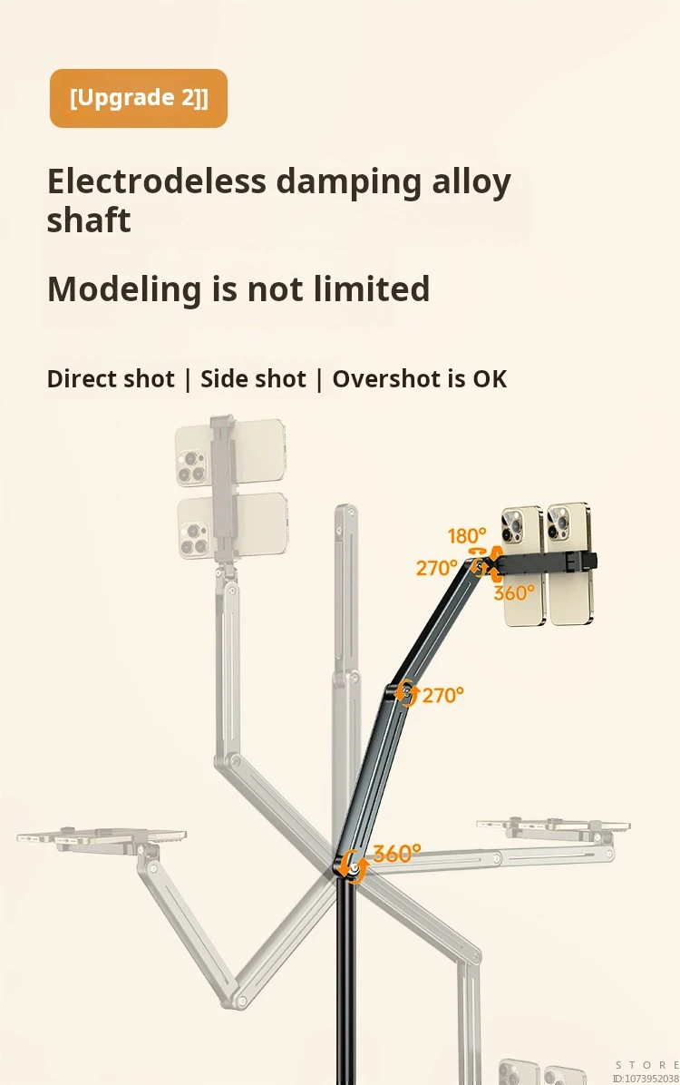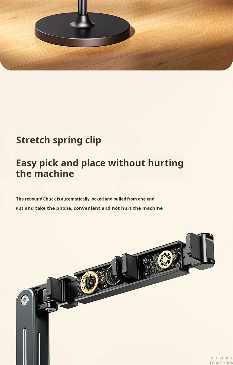 De plus, les bras réglables en alliage d’aluminium et les clips en plastique rendent le support au sol plus intelligent grâce aux clips multifonctionnels. Il peut non seulement contenir des téléphones, même des téléphones doubles. Mais aussi un iPad. Vous pouvez ajuster le clip pour qu’il soit horizontal ou vertical.